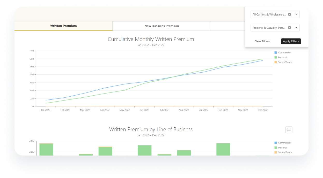 Easily visualize your Written Premium, New Business Premium and Loss Ratio